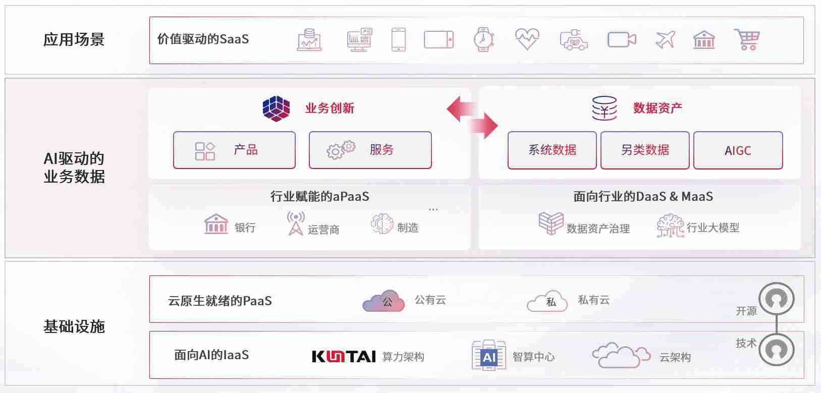 数字时代,,,,围绕企业数字化转型的关键要素,,,ABPAY数码开创性的提出数云融合战略和技术体系框架,,,,着力在云原生、、、、数字原生、、、、AI原生和信创产业上架构产品和服务能力,,为处在不同数字化转型阶段的快消零售、、汽车、、、、金融、、、医疗、、政企、、、、教育、、、运营商等行业客户提供泛在的敏捷IT能力和融合的数据驱动能力,,,构建跨界融合创新的数字业务场景和新业务模式,,,助力企业级客户建立面向未来的核心能力和竞争优势,,全面推动社会的数字化、、、、智能化转型升级。。